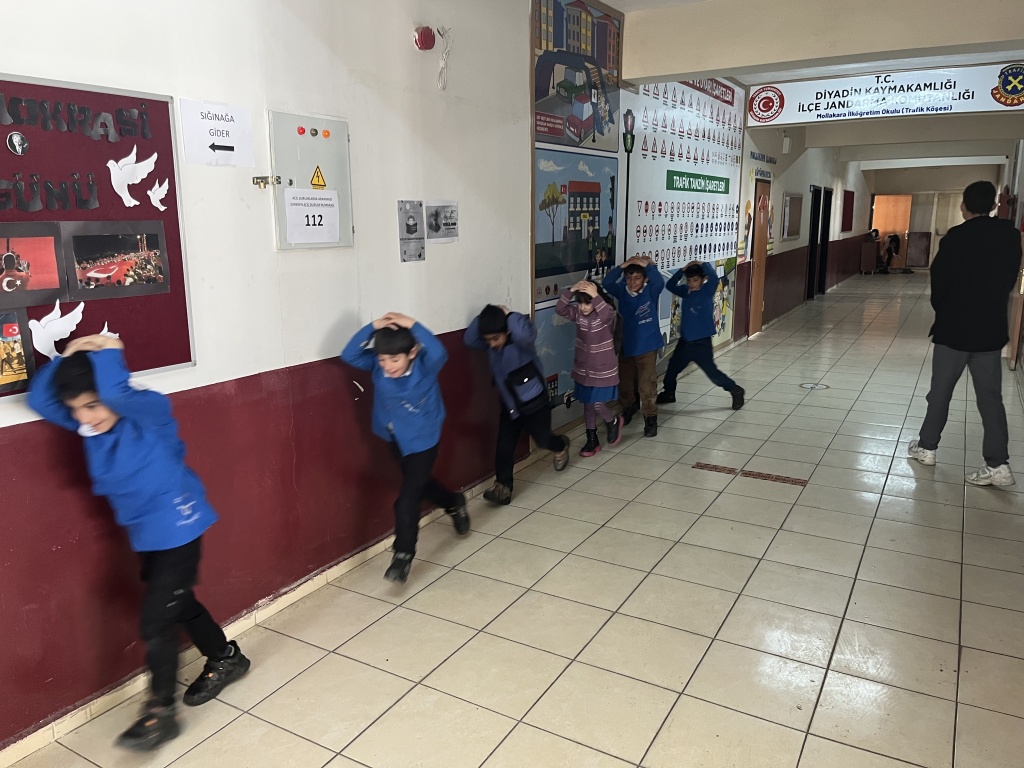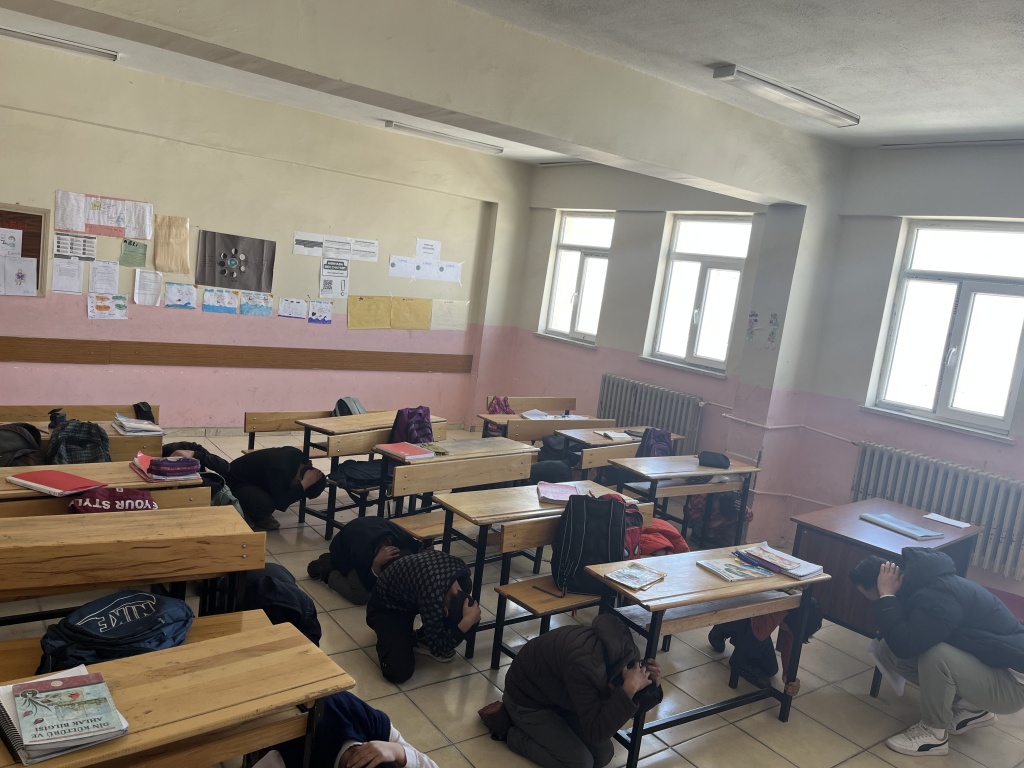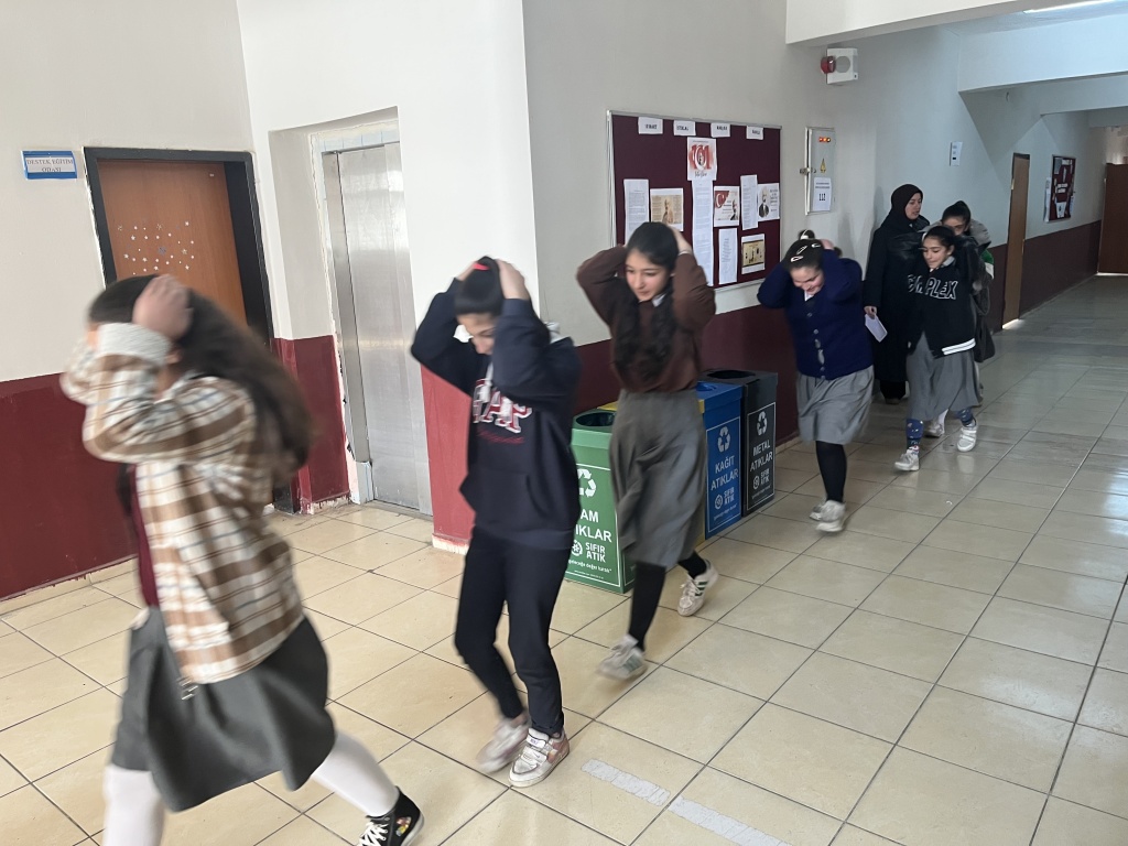 Olası bir depremde personelimizin ve öğrencilerimizin can ve mal kaybını en aza indirmek amacıyla eğitici videolar izlettirip gerekli bilgilendirmeleri yaptık. Toplam 144 kişinin katılımıyla gerçekleştirilen tatbikatımız, herhangi olumsuz bir durumun yaşanmasına mahal verilmeden vukuatsız bir şekilde tamamlanmıştır.